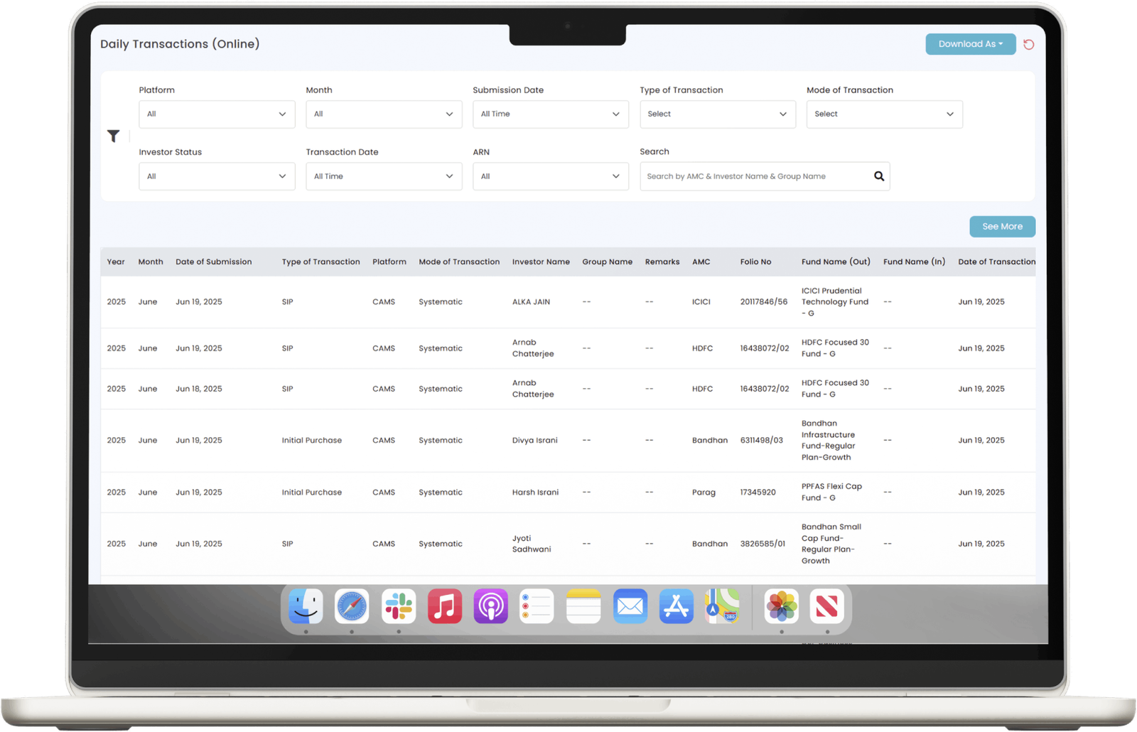 The platform supports high-volume SIP, STP, and SWP transactions daily, providing standardized tracking and reporting to ensure accuracy and efficiency in handling intricate investor hierarchies.
