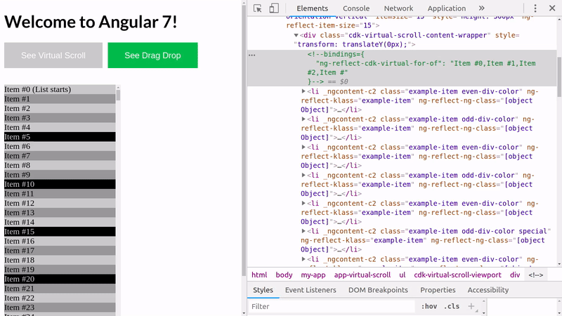 Suppose in your website you have to show a list of a million records. If you load the list at a time and put everything into the DOM at very beginning then your website will hang a lot. And it will be very slow for the end user. So how will you overcome from this problem? If you are using ng7 then the answer is simple – virtual scrolling. With the help of virtual scrolling your DOM will load only those record which is available on the viewport. So you will not be bothered if there is million record or trillion. Cheers!